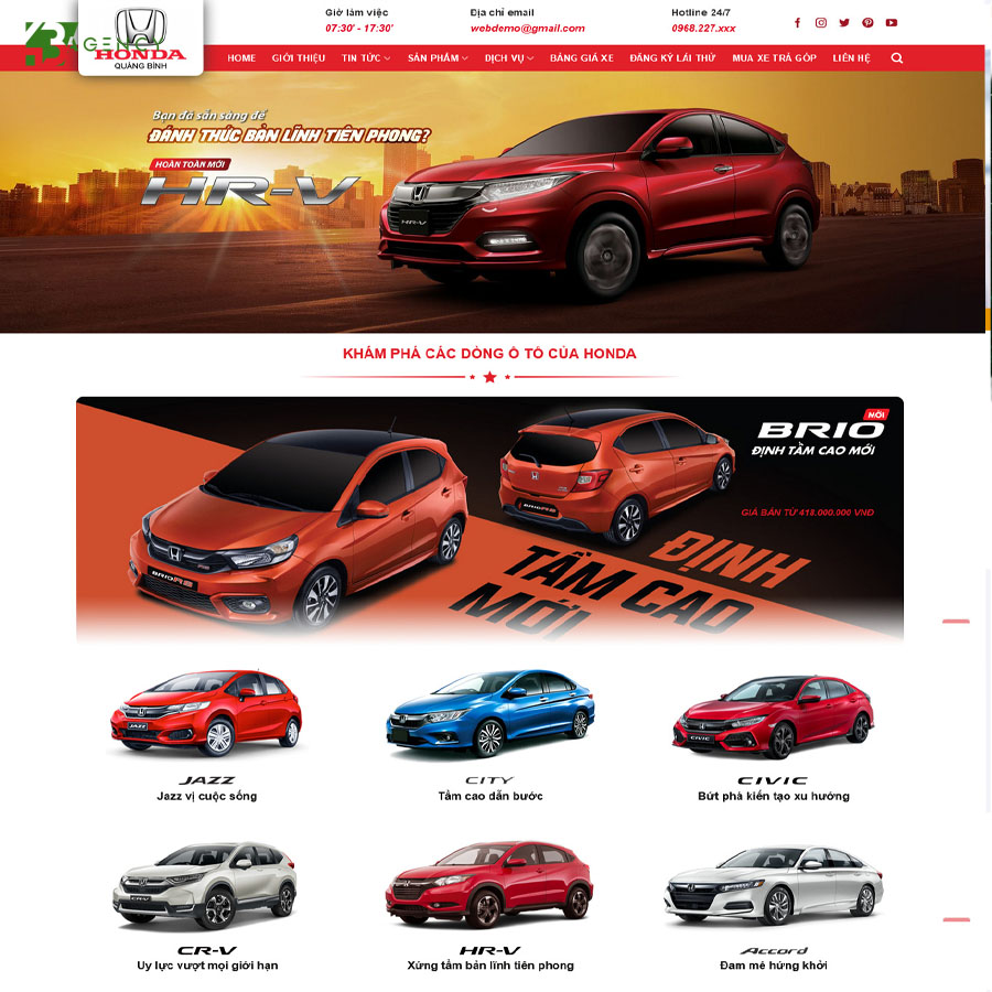 Thị trường xe ôtô Honda luôn sôi động nhờ thiết kế bền bỉ, tiết kiệm nhiên liệu và phù hợp với nhiều đối tượng khách hàng. Để tiếp cận người mua một cách chuyên nghiệp, doanh nghiệp cần một website được thiết kế tối ưu, vừa thể hiện sự sang trọng của thương hiệu, vừa giúp khách hàng tìm kiếm thông tin và đặt lịch dễ dàng. Nếu bạn đang thiết kế website lấy gấp tại Đà Nẵng, việc lựa chọn mẫu thiết kế sẵn sẽ giúp tiết kiệm thời gian và chi phí mà vẫn đảm bảo chất lượng.